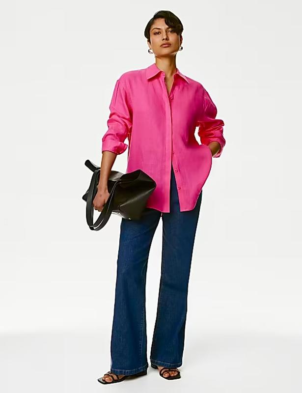 Класна яскрава сорочка від M&S. 100% льон. Колір більш чистий, ніж на фото Розмір вказаний 20( ідеально підійде на М/L) Стан нової речі.