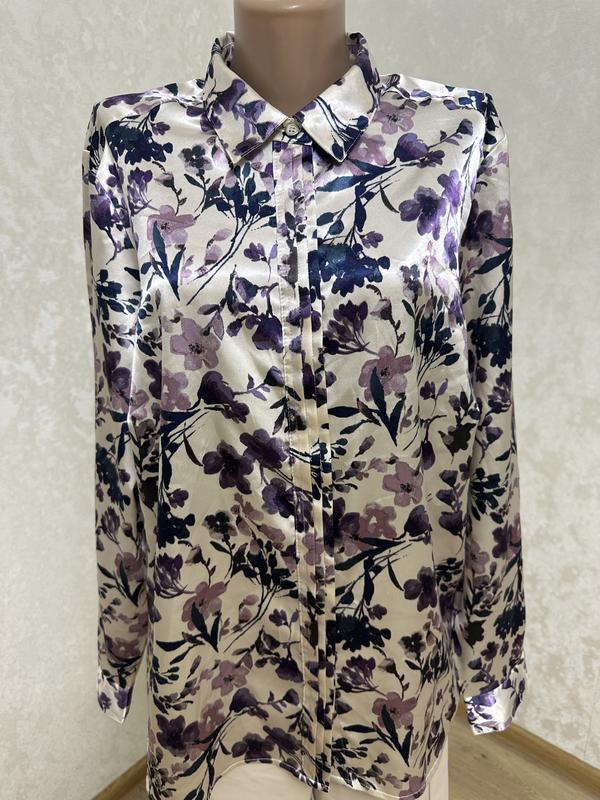 Якісна пряма , вільна сорочка з саржевим відливом в квіти. Виміри: ПП 43 ПГ 68 ПТ 65 Низ 67 Довжина 66 Рукав 62