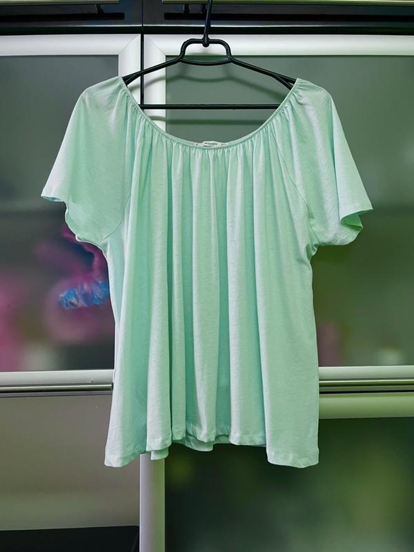 Mango нова котонова чудова блузка з прівидкритою зоною декольте. Розмір з бірки L Mex G. Довжина 57 см. Напів обхват грудей від 56 (в стані покоя) до 74 см. Котон.
