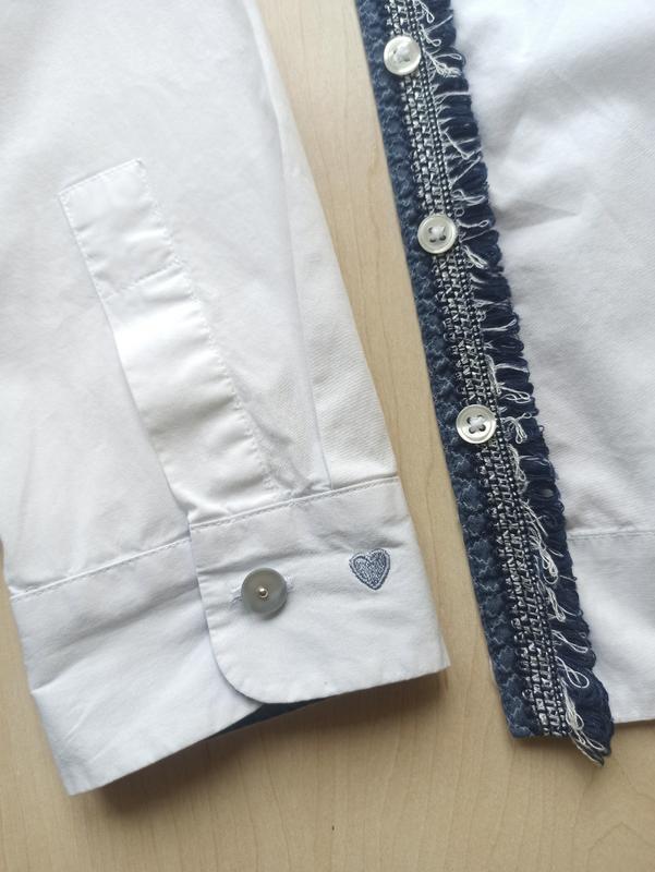 Белоснежка рубашка с интересными деталями. Асимметричный нижний край.