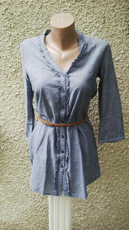 Рубашка удлиненная с жабо, esprit ,хлопок,блуза,туника на застежке