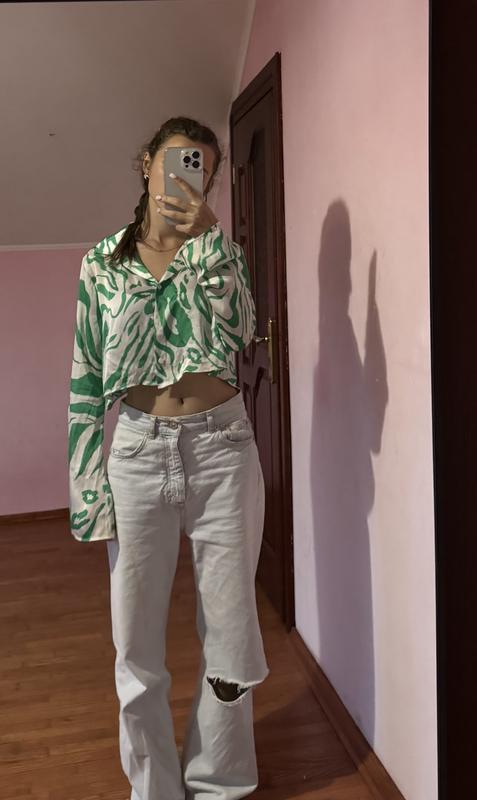 Легка та модна сорочка з укороченим кроєм чудово доповнить ваш образ. Її можна носити з джинсами, шортами чи спідницею – виглядає завжди сучасно й охайно. 📸 Додаткові фото та заміри скину в особисті повідомлення На руках досить стисло Розмір S