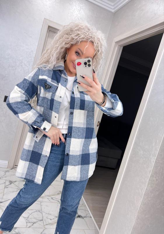 Удлиненная оверсайз-рубашка Сыграет в прохладные дни, идеальный вариант под джинсы, брюки, джоггеры. Застежки - кнопки. Рабочие карманы. Треугольная нашивка на кармане дополняет ваш стиль спорта. Материал: шерсть клетка Размеры: 42-44, 46-48, 50-52 бурд)