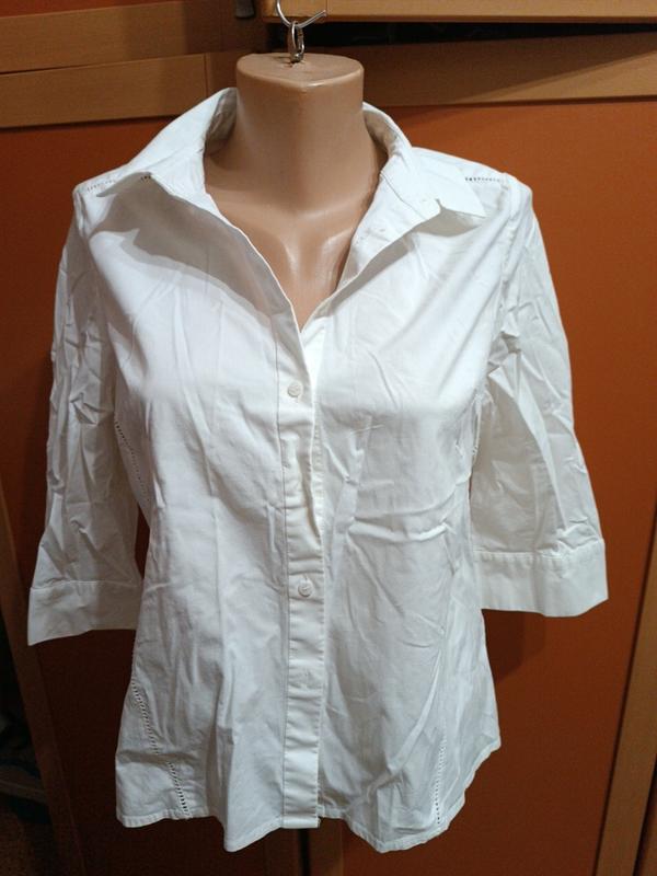 рубашка блуза, колir мелкий, размир 48, замиры: плечи37, грудь52,талия 56, перед длина53, зад 59, рукав 41, коттон +эластан