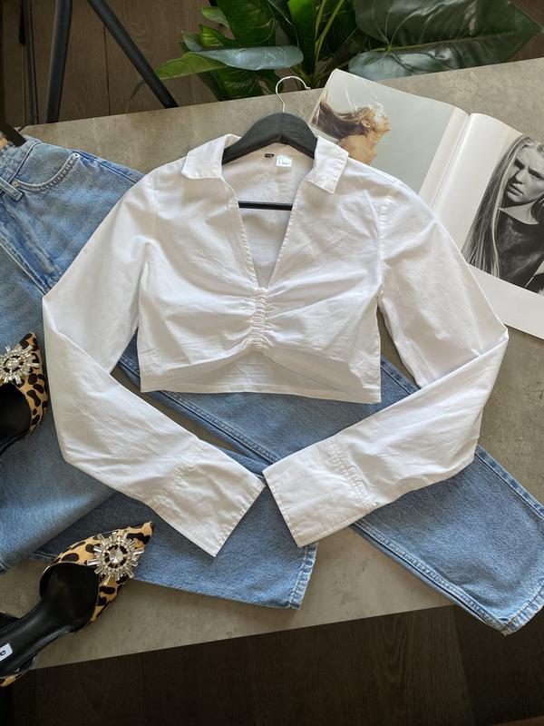 Вкорочена Котонова сорочка H&M Divided Розмір S Пог 42 см. Плечі 37 см. Рукав від плеча 64 см. Довжина 35 см.