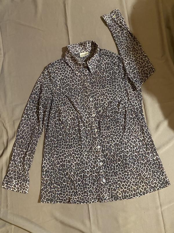 Сорочка жіноча Просвічується; добре тягнеться На фото манекен розміру S Стан: б/в дуже хороший Розмір: XL/XXL (краще орієнтуйтеся по замірах) Заміри: півобʼєм по груді 54 см; довжина 71 см; довжина рукава 63 см; плече 13 см; Тканина: сітка (100% нейлон) Колір: коричневий (леопардовий принт)