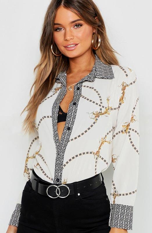 Рубашка рубашка в принт канатов и цепочек от Boohoo. Застегивается на пуговицы. Длинный рукав. Размер М/L ПОГ - 56 см Длина - 60 см