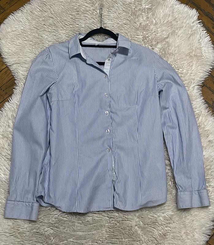 Жіночка рубашка Frantini ніжно блакитного кольору в білу смужку