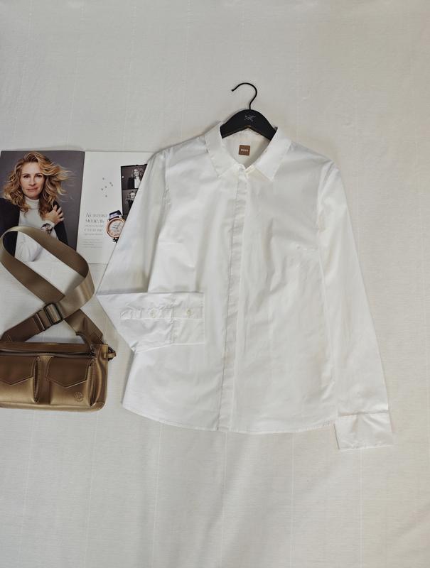 🌿белая рубашка Bo$$ силуэтного кроя, ткань коттон Размер:40 Замеры:ПОГ 50 см, длина 65 см, рукав 60 см