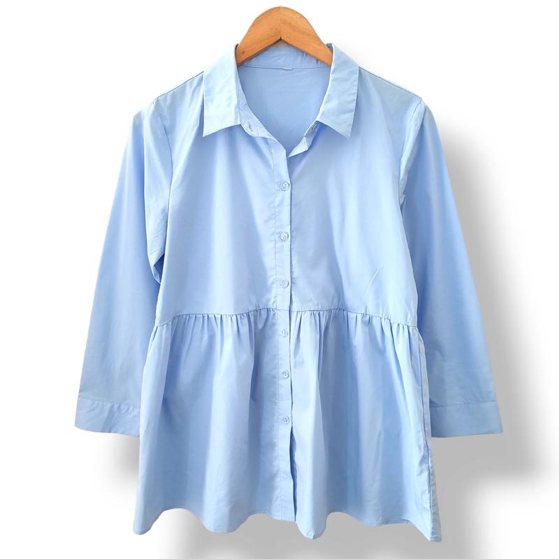 Стан відмінний, без нарікань Розмір по бірці XS, краще на S - орієнтир на заміри Плечі 38 см Рукав від плеча 52 см Ширина під пахвами 48 см Довжина по спинці 70 см Колір яскравий , небесно-блакитний, більш відповідає 3 фото 70% бавовна 27% поліестр 3% еластан