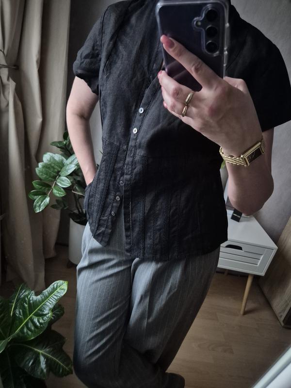 Элегантная, стильная и универсальная вещь, которая подчеркивает ваш вкус и добавляет образу совершенства ✨ ✨ Состояние: новая, без бумажной бирки ✨ Размер: S–M — садится отлично ✨ Цвет: насыщенный черный - классика, которая всегда выглядит дорого ✨ Состав: 100% лен – натуральная, приятная на ощупь ткань, дышащая и легкая ✨ Бренд: 100% оригинал Mark & Spencer - стиль и премиальное качество Рубашка Lyon легко сочетается с брюками, джинсами или юбками, создавая современный, элегантный и премиальный образ. Стиль, комфорт и брендовый лен — инвестиция в ваш гардероб 🖤✨