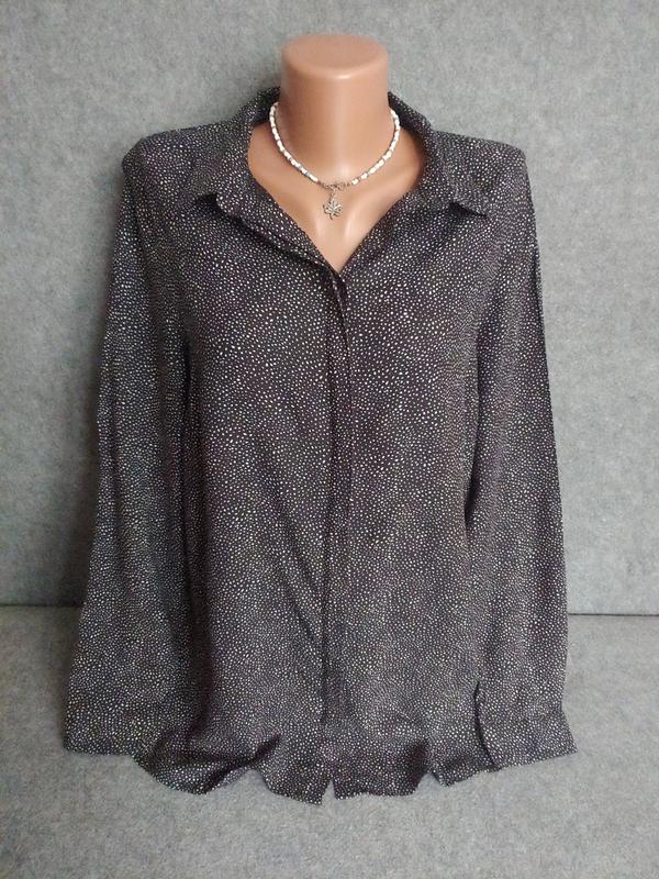 Свободная рубашка блуза из вискозы черного цвета с белый горох 48-50 размера