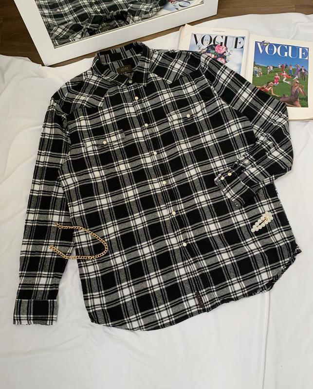 Рубашка в клетку из мужского плеча Размер не указан. Подойдет на XL-2XL Полуобхват груди 62 см Длина 81,5 см Рукав 65 см Плечи 50 см Материал: хлопок Состояние: идеальный