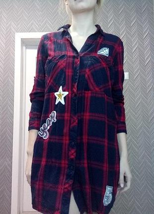 Bershka. Можно носить как платье и как рубашку. Размер s. Недостатков нет.