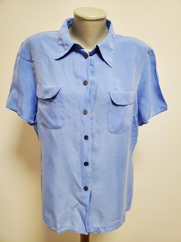 Ткань мягкая, легкая, шелковистая, не тянется. ПОГ 58, ПОТ 52, ПОБ 58, плечи 44, рукав 21, длина 63 см.