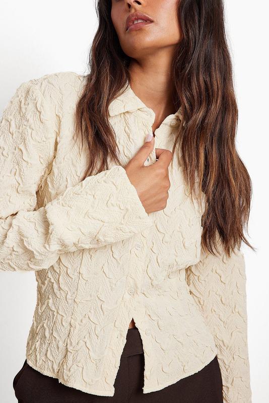 Сорочка виготовлена зі структурованої тканини та має приталений крій. Вона має класичний комір та довгі рукави з манжетом на одному ґудзику. Сорочка застібається на ґудзики спереду. Груди - 96 см Талія - 78 см