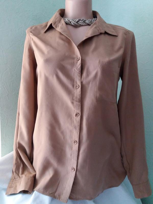 Приятная легкая рубашка. Цвет на фото с бирками реальный. ПОГ-52см ПОБ-55см ДЛ-68/78см,сзади удлиненная, ДЛ.рук-62,можно подстегнуть(35см) Шир.пл-41см. Шир.сп. по кокетке-37см.,чуть ниже 41см.