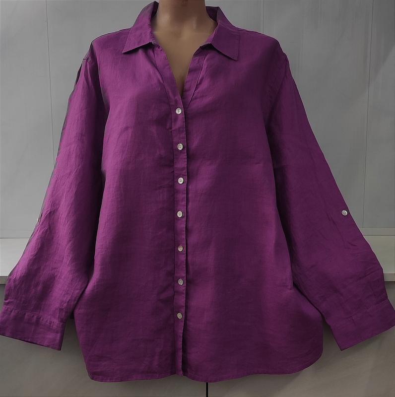 Шикарная рубашка оверсайз из натурального льна размер 50-52-54. Новая только отсутствуют бумажные бирки. Рукава можно регулировать. Длинна 79 см, длинна рукава от горловины 73 см, ширина под мышками 70 см.