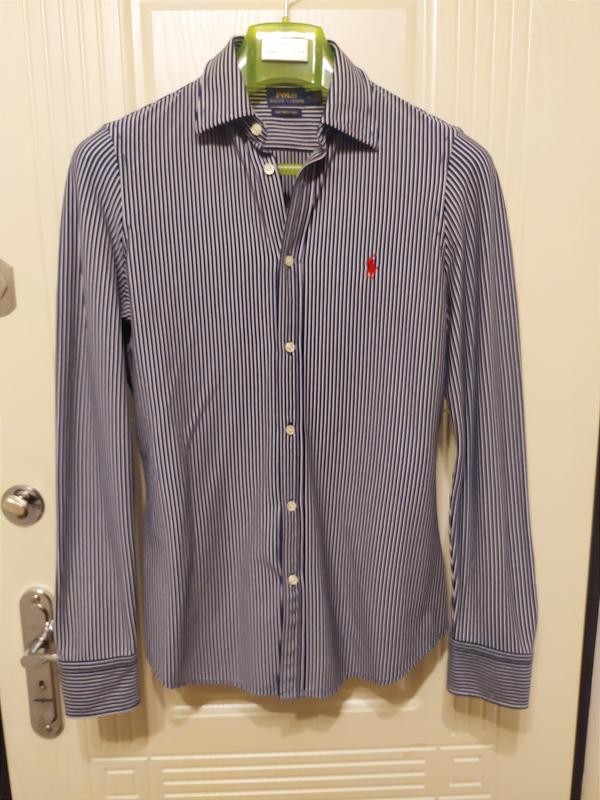 Очень классная рубашка/рубашка, что особенно в ней изюминкой- так это трикотажная ткань, которая очень приятная к телу, почти не мнется в отличии от обычных рубашек. Имеет несколько приталенный крой, что выигрышно подчеркивает женскую фигуру и как + можно носить как заправленную, так и на выпуск Рич АБСОЛЮТНО новая, но поскольку не имеет бумажной бирки указания стана как идеальный ОГ 48 талия 43 длина 70