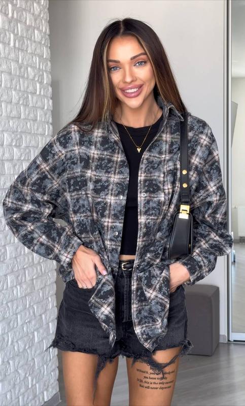 Та же рубашка, о которой потом спрашивают: «где взяла?»🩶 Отшили из очень качественной, натуральной, идеально гладкой фланели. А комбинировать ее можно как с шортами или джоггерами, так и с джинсами или леггинсами😎 Мод.053 Цвет: черный, серый Материал: фланель (Турция) Размер: oversize (42-48) 🔥Отличное качество ткани и пошива