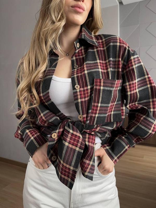 Жіноча сорочка в клітку Мод 2132 Фото Реал Тканина фланель клітинка Розмір: см, мл 🔹 Вільний oversize-крій 🔹 Подовжена модель 🔹 Модний клетчатий принт Заміри: Груди: 114-118 см Довжина 74-75 см