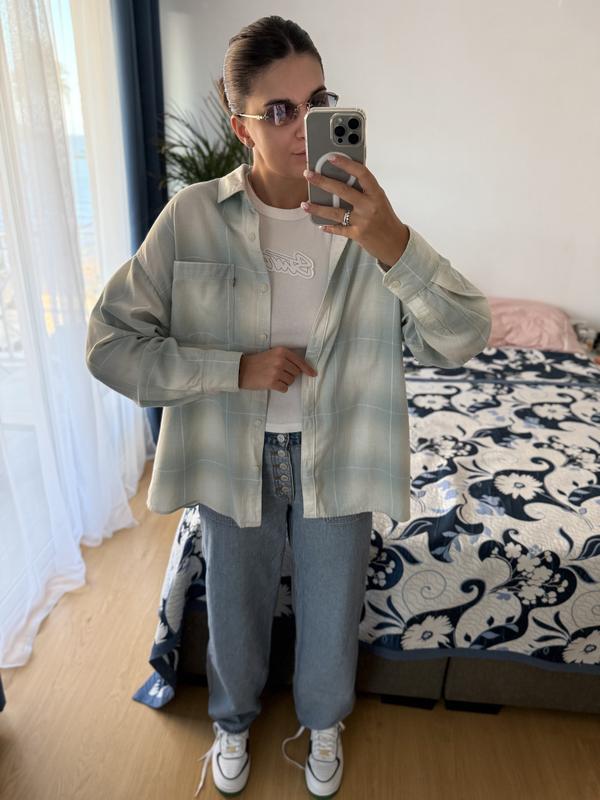 Сорочка оригінальна картата,розмір XL,хоча я носу розмір М ,спеціально брала білу ,шоб була оверсайз.