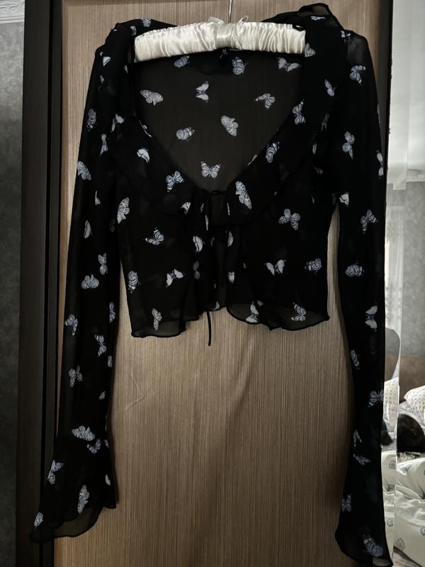 Блуза в метелики. Завʼязується посередині. Рукава-дзвоники