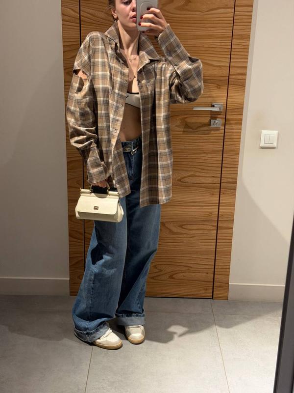 🌸 Новинка 🌸 В клетку oversize рубашка, что добавляет образу легкости - идеальная на каждый день ✨ мод. 800 Фото реал 🤍 Материал : турецкая фланель Размеры: onesize Кольори : шоколад, беж В наличии ✅