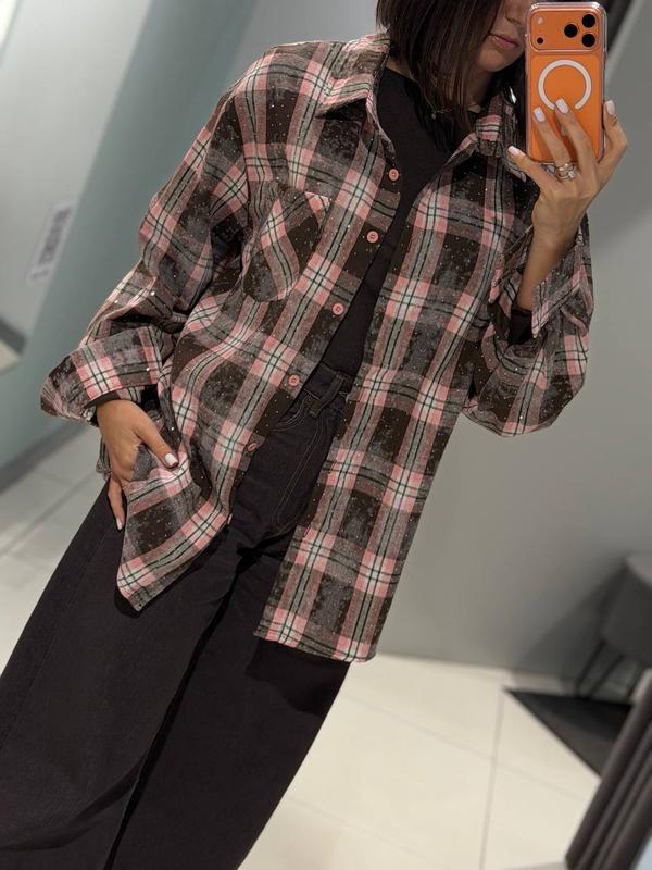 ✨ Светящаяся клетинка ✨ Стильная женская рубашка в клетку с деликатными камушками - идеальное сочетание повседневного комфорта и элегантного акцента. Мягкая ткань, женственный крой и легкое сияние, притягивающее взгляды 🤍 🔹 Зручно • Стильно • Актуально 🔹 Для образов на каждый день и особенных моментов ▪️Модель 7101 ▪️Размер: oversize ▪️Цвет: как на фото ▪️Ткань: фланель со стразами