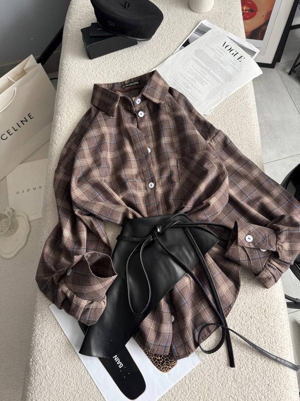 Сорочка+ баска 😍 ✅Тканина: фланель(100% котон) Баска : эко шкіра. ✅Розміри: універсал. ✅Кольори: як на фото. Стильні та зручні сорочки в клітинку у трендових кольорах+ баска незамінна річ жіночого гардеробу, вона ідеально підійде для прогулянок та повсякденних образів,сорочка відмінної якості та пошиття.