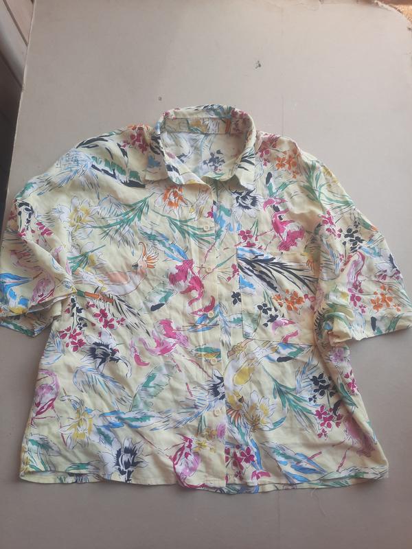 Натуральная рубашка гавайка оверсайз укоро,енная модель на евр 38 Бирочки срезаны