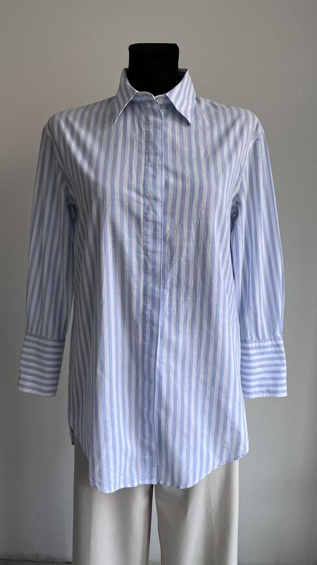 Сорочка у смужку 100% бавовна Стан ідеальний Розмір ХС Півобхват грудей - 48 см Довжина рукава від горловини - 68 см Довжина -73 см