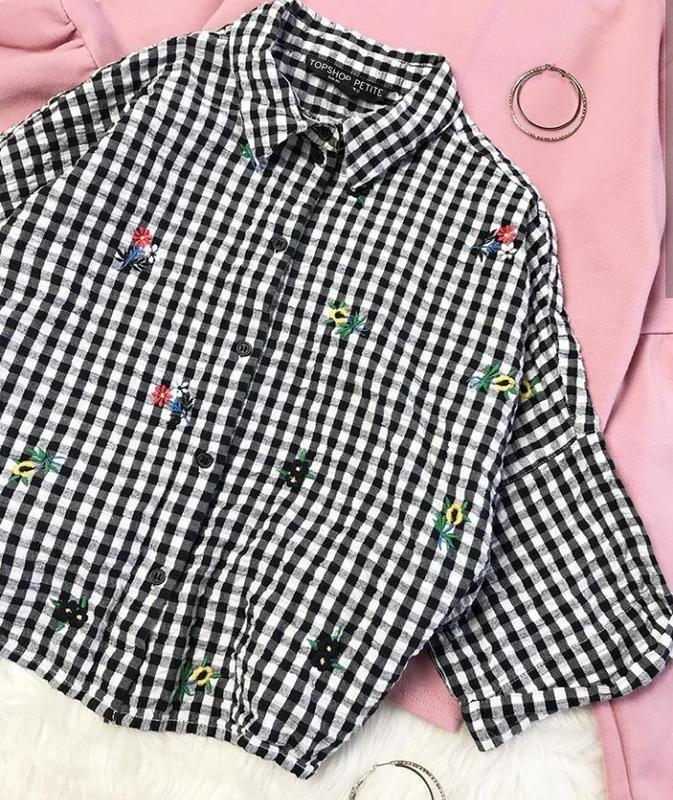 Трендова блуза в клітинку з вишивкою. Приємна тканина. Вільний крій- під високі джинси та спідницю олівець просто супер!