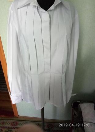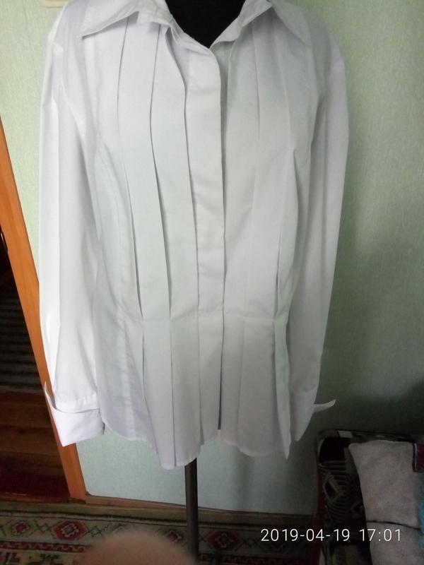 блуза белая нарядная впереди со складками пуговицы потайные длина изделия 60 см длина рукава 60см рукав с манжетом обем груди 104 см