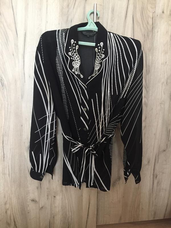 Чорно белая блуза рубашечка под поясок. Размер 3XL