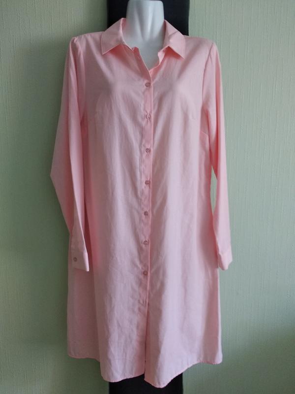 Натуральная, лёгкая, нежная рубашка. Длина по спинке 97 см, ПОГ 50 см, ПОТ 51 см, ПОБ 56 см, плечо 11,5 см, длина рукава 62,5 см.