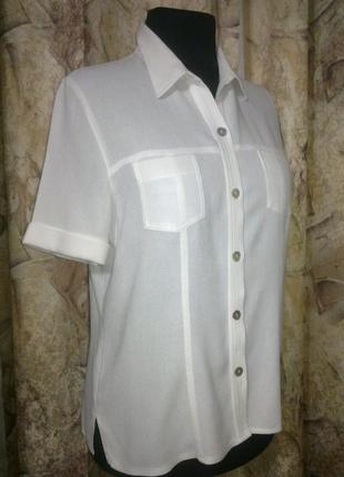Стильная, фирменная, легкая рубашка, белого цвета, имеет прямой, приталенный фасон, с короткими рукавчиками, с манжетиками, украшенная выстрочками, по боках есть разрезики, на груди, имеет накладные карманчики. Изготовлена в Европе, ярлык основной срезан, из 85%вискозы и 15%полиестера, приятная, тонкая, легкая, почти, натуральная ткань. Шитье и качество на высшем уровне!!!! Состояние отличное. Размер 52-54ХL. РАЗМЕРЫ: ПОГ.=56см, ПОТ.=54см, ПОБ.=57см, Длн.издл.=65см, Длн.рукв.=26см, Шир.плеч=43см. ЛОТЫ КОМБИНИРУЮ!!!