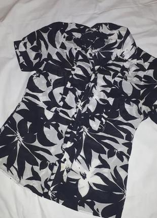 Рубашка- блуза,цвет черно-белый. Приятная мягкая тонкая х/б вискоза ткань похожа на батист.Смотрится стильно и интересно. Длина 62см, плечи 35см,грудь 48см,низ 50см,тал ия 42см,до кокетки вниз 35см,обхват рукава 34см и можно меньше за счет пуговиц. Указан размер 40. Если надо еще фото - дошлю. Доставка УП, НП или Джастин