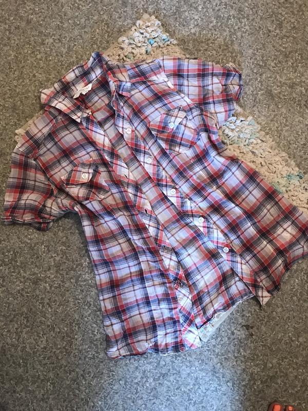 Рубашка в хорошем состоянии, все пуговки на месте, можно носить в разных вариациях: свободно, заправлять в джинсы, завязывать на поясе.