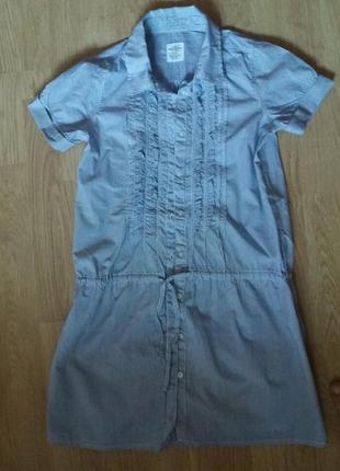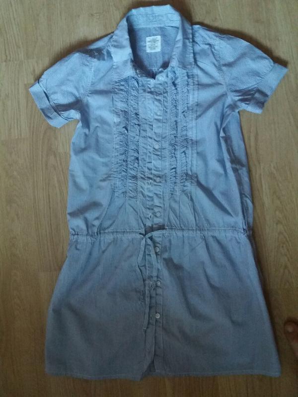 Удлиненная синяя рубашка в белую полоску. Смотрится очень красиво. Длина - 80см. ПОГ - 40 см. ПОТ - 42см.(регулируется пояском)