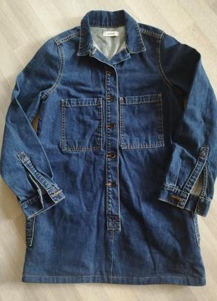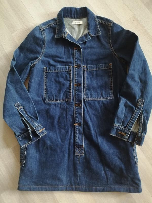 Стильная модная рубашка, туника. джинс, качественный, приятный к телу, пуговицы рабочие, по бокам глубокие карманы, взади и на груди по 2 накладных рабочих кармана. Длина изделия от воротника 76 см, рукава от плечевого шва 60 см. ПОГ 47 см. р. S, подойдет на р. М