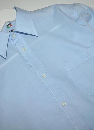 Стильная рубашка нежно голубого цвета, приятная легкая ткань. Размер указан L, подойдет и на М Длина 61 см, ПОГ 50 см., плечи приспущены, рукав от горловины 66 см.
