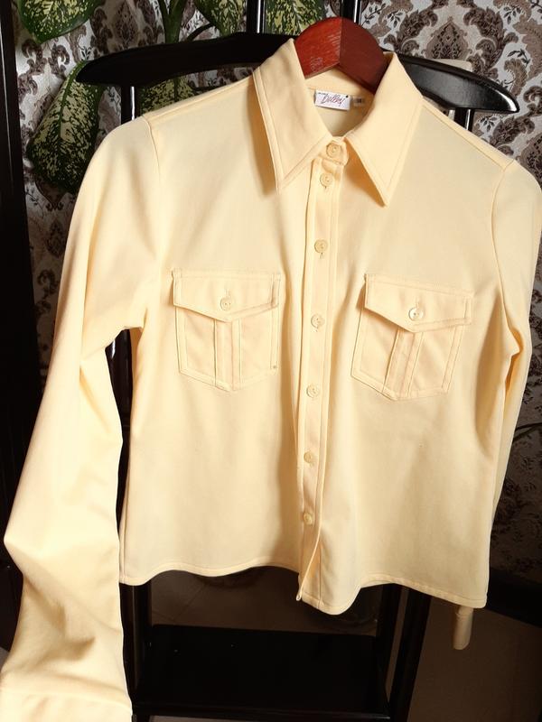 гарна сорочка лимонного кольору...виглядає дуже стильно. є запасна пуговка.