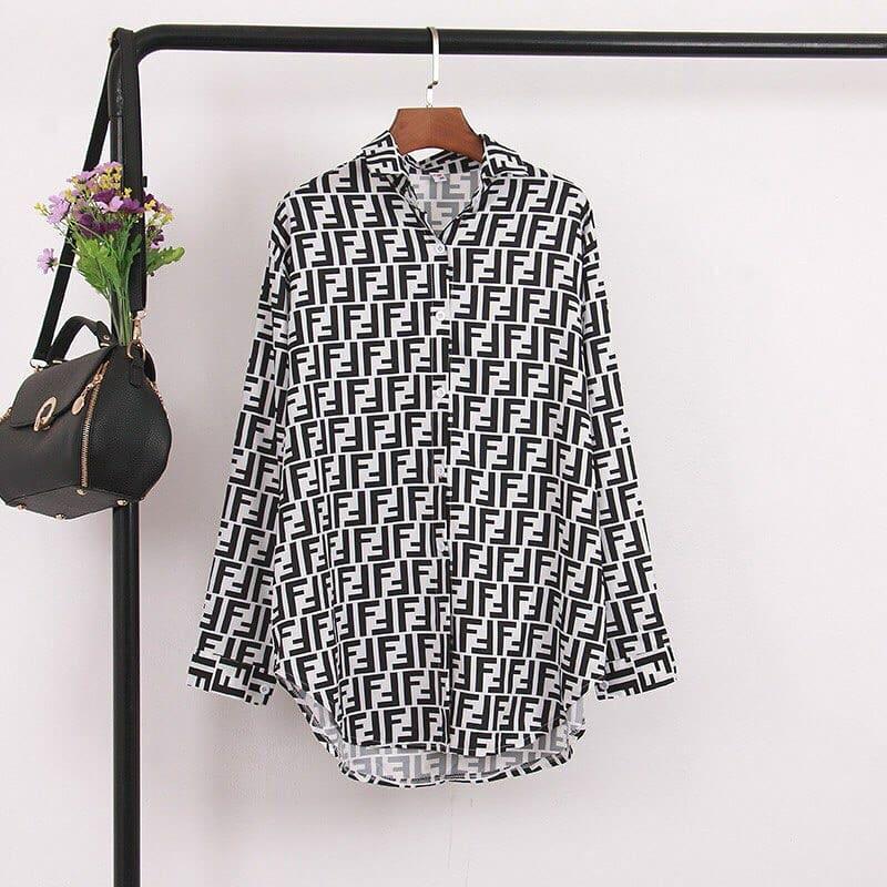 Сорочки FENDI з креп-шифону 🖤 Коричневі і білі 🔻Розмір уні 42-46