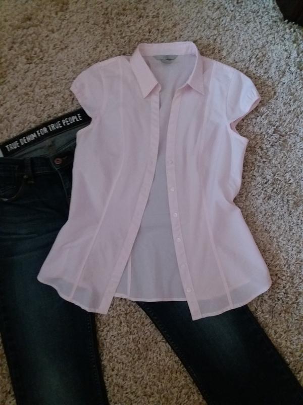 Ніжно пудрова блуза з комірцем і коротким рукавом H&M Стан новoї речі Гудзики маленькі Заміри: Довжина від плеча 60 см, Півохват грудей 44 см, Рукав від горловини 21 см Талія півобхват 38см.