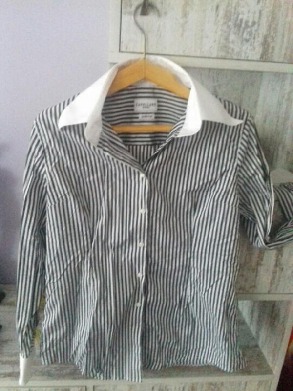 Є маленькі пятнишки всередині коміру. плямки пробувала вивести. залишились майже не помітні, фото добавила.при носінні не буде замітно, більше дефектів немає. пог 60, рукав 64. плечі 43, Довжина 64. воротнік твердий, стійкий.