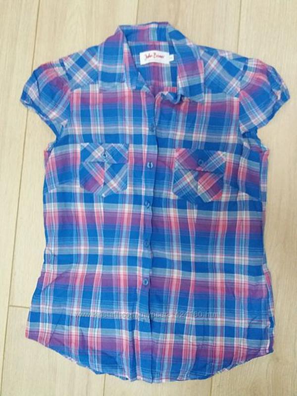 Хорошенькая летняя рубашка от BonPrix. Состояние очень хорошее. Легкая, в жару не парит. Одетая была 4-5 раз. Длина 63 см Плечи 34 см ПОГ 45 см ПОТ 41 см При покупке нескольких вещей делают скидку! ))