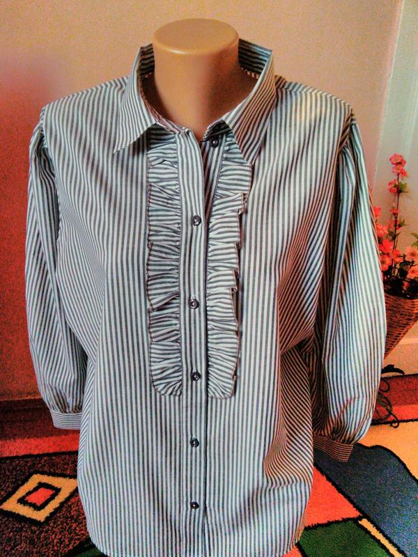 Блузка-рубашка в полоску. Рукав собран на манжет. По горловине сборки-рюши. ПОГ-60 см ПОТ-57 см Длина 64 см