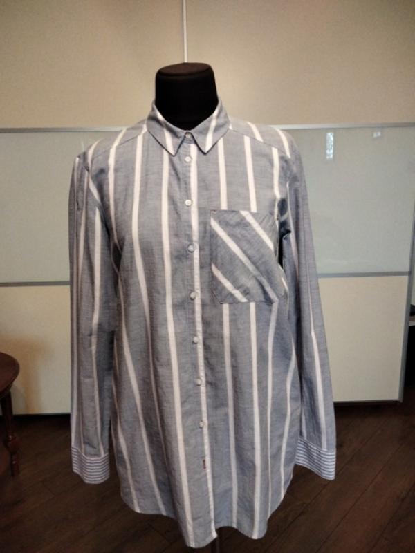 Стильная рубашка в полоску из мягкого хлопка . Длина 80см , рукав 63см , плечи 45 см, пог 57см.