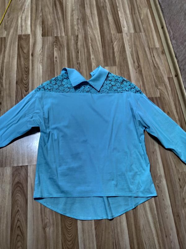 Так склалося що я потрапила на роботі під скорочення, одягати сукні мені більше не куди, тепер моя одяг джинси і кросівки. Я дуже великий шопоголік, речей дуже багато, є навіть такі, що не встигла одягнути. Тепер распродаю свої речі, всі одягалися дуже мало, буквально пару раз, стан всіх нове. Віддаю за ціною набагато нижчою ніж купувала. Дивіться інші мої оголошення, при купівлі трьох блузок відправка за мій рахунок. Це сорочка 46-48 розміру. На плечах ручна в'язка. Колір в реальності бірюзовий